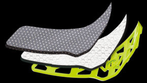 Прилегающая к коже мягкая прокладка состоит из двух инновационных материалов: специальной белой пены и ткани X-Static. Первая не накапливает пот и ускоряет процесс испарения, вторая обладает антибактериальными свойствами и способствует транспирации (отводу) пота, сохраняя комфорт и производитель, предотвращая неприятные запахи.