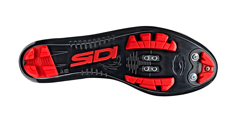 Подошва RS17. Лёгкая и совершенная подошва (с точки зрения жёсткости при педалировании и сгибании при ходьбе.) из нейлона с полиуретановыми вставками. Форма подошвы протектора была специально разработана для горных велосипедов. Она обеспечивает хорошее сцепление с дорогой, устойчивость. Центральная вставка с логотипом Sidi работает как нескользящая, практична и полезна, особенно для менее опытных пользователей.