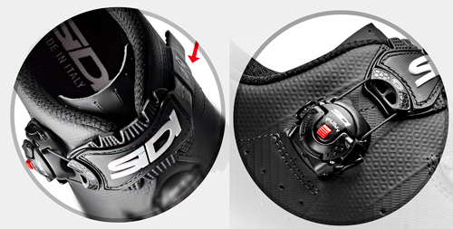 Система шнуровки Sidi Tecno-3 Push System равномерно и точно регулирует фиксацию ноги по всему подъему. Компоненты системы заменяемы.