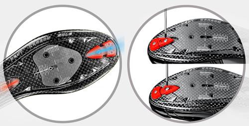 Подошва Sidi Full Carbon состоит из слоя карбона, утончающегося ближе к пальцам ног, она очень жесткая, но в то же время не мешает свободной циркуляции крови в ступне. Благодаря небольшой толщине подошвы, нога теперь находится ближе к оси педали. Также гонщики оценят препятствующую скольжению ноги накладку в районе пальцев и сменный полиуретановый вкладыш под пяткой. Эта подошва предназначена для профессиональных гонщиков, проезжающих большие расстояния.