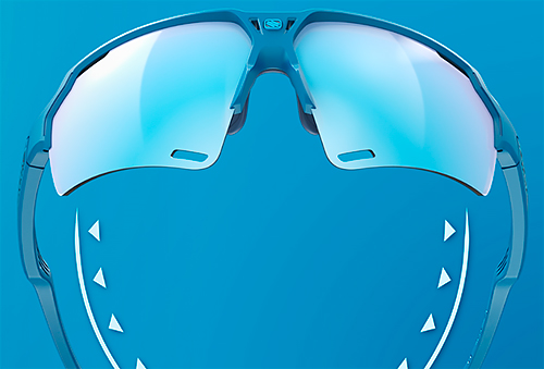 Инновационная система PowerFlow оснащена вентиляционными отверстиями, расположенными на кончиках виска, на передней части корпуса и на линзе для улучшения циркуляции воздуха, обеспечивая при этом максимальную аэродинамическую эффективность и не нарушая зрение.