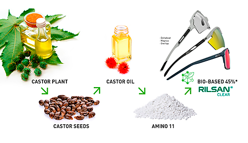 Rilsan Clear® - это высокоэффективный устойчивый полимер на биологической основе 100% возобновляемого происхождения, разработанный компанией Arkema. Ключевыми свойствами Rilsan Clear® являются легкость, химическая и усталостная стойкость, гибкость и простота обработки, которые делают этот материал чрезвычайно прочным, устойчивым к ударам и атмосферным воздействиям и идеально подходящим для использования в спорте.