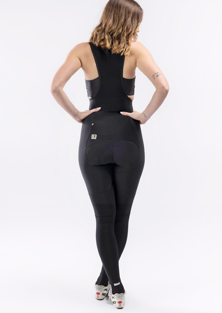 Велорейтузы c лямками, сочетающие в себе защиту и хорошую аэродинамику, благодаря вставкам, расположенным так, чтобы поддерживать мышцы во время вращения педалей.