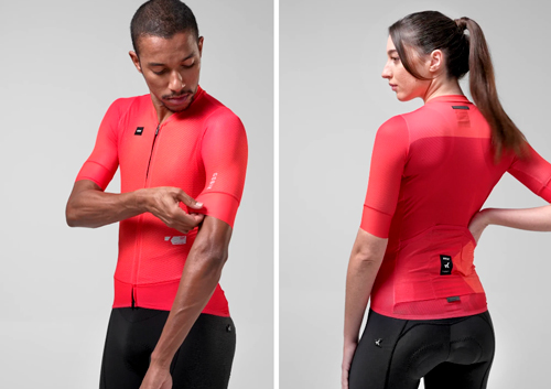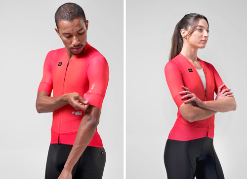 Удлиненная манжета на рукаве адаптируется к положению руки на руле, когда мы сидим на велосипеде, улучшая аэродинамику.