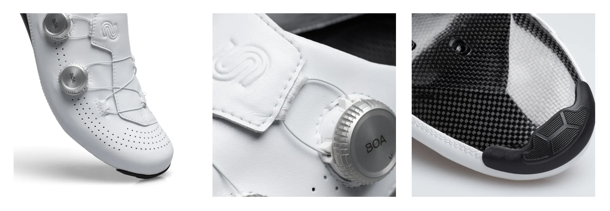 Премиальная система крепления: Двойные BOA® Li2 dials для микрорегулировки натяжения и идеальной посадки во время гонки.