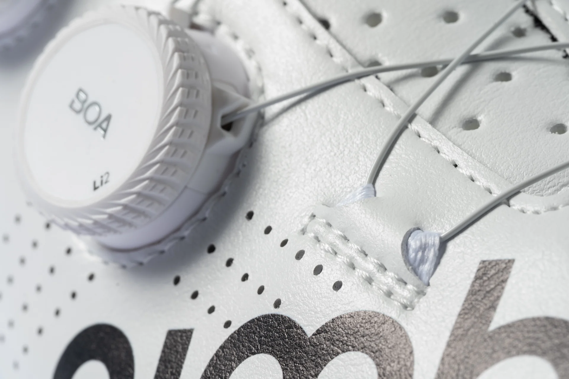 Премиальная система крепления: Двойные BOA® Li2 dials для микрорегулировки натяжения и идеальной посадки во время гонки.