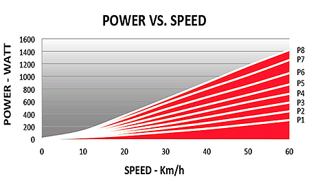 Мощность - 900 ватт(при 40 км в час)..