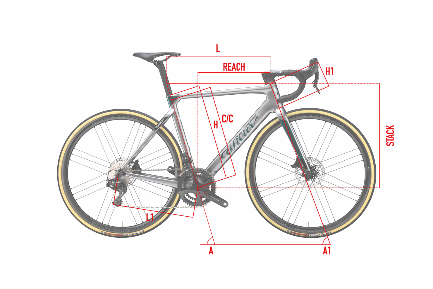 | SIZE | REACH | STACK | H | C/C | L | A | H1 | L1 | A1 | WHEELBASE | |