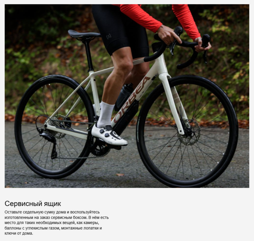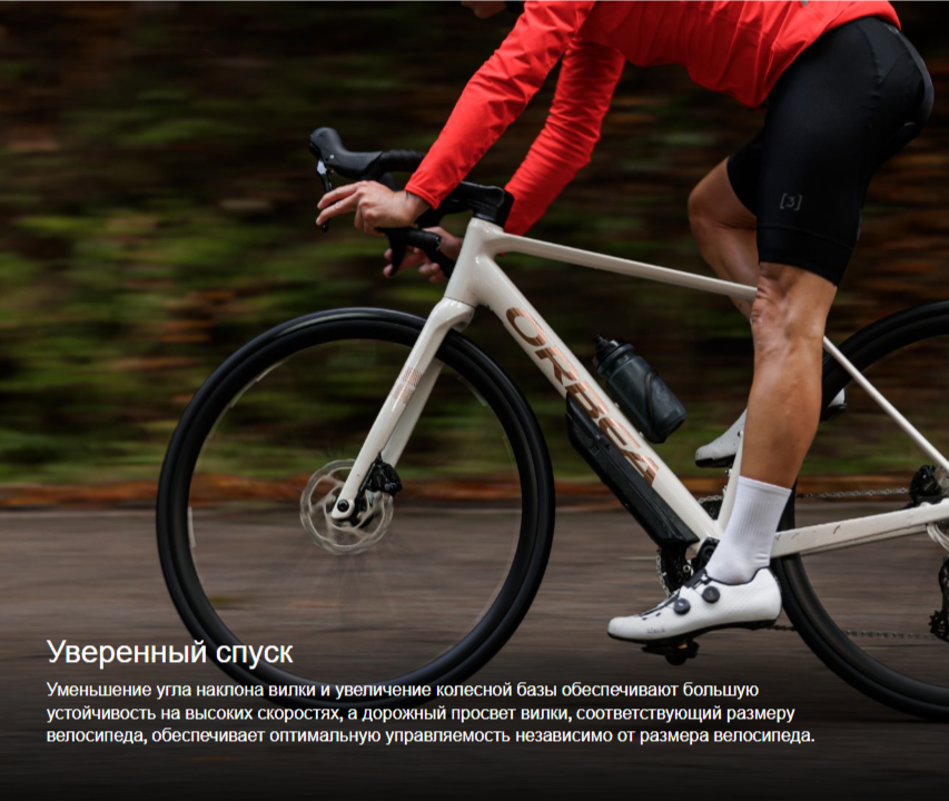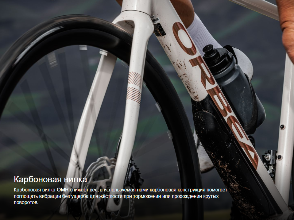 | Вилка | Orbea Avant Hydro 2025, полностью карбоновая, с конической рулевой колонкой 1-1/8" — 1,5", сквозная ось 12x100 мм, резьба M12x2 P1 |