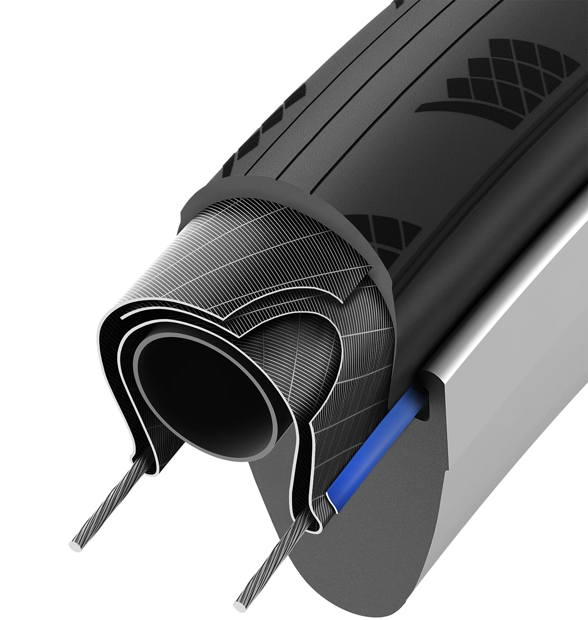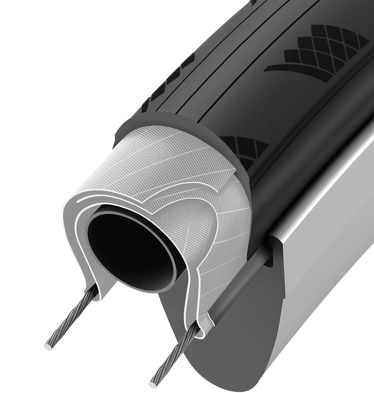Дополнительный слой на борту покрышки обеспечивает дополнительную защиту.