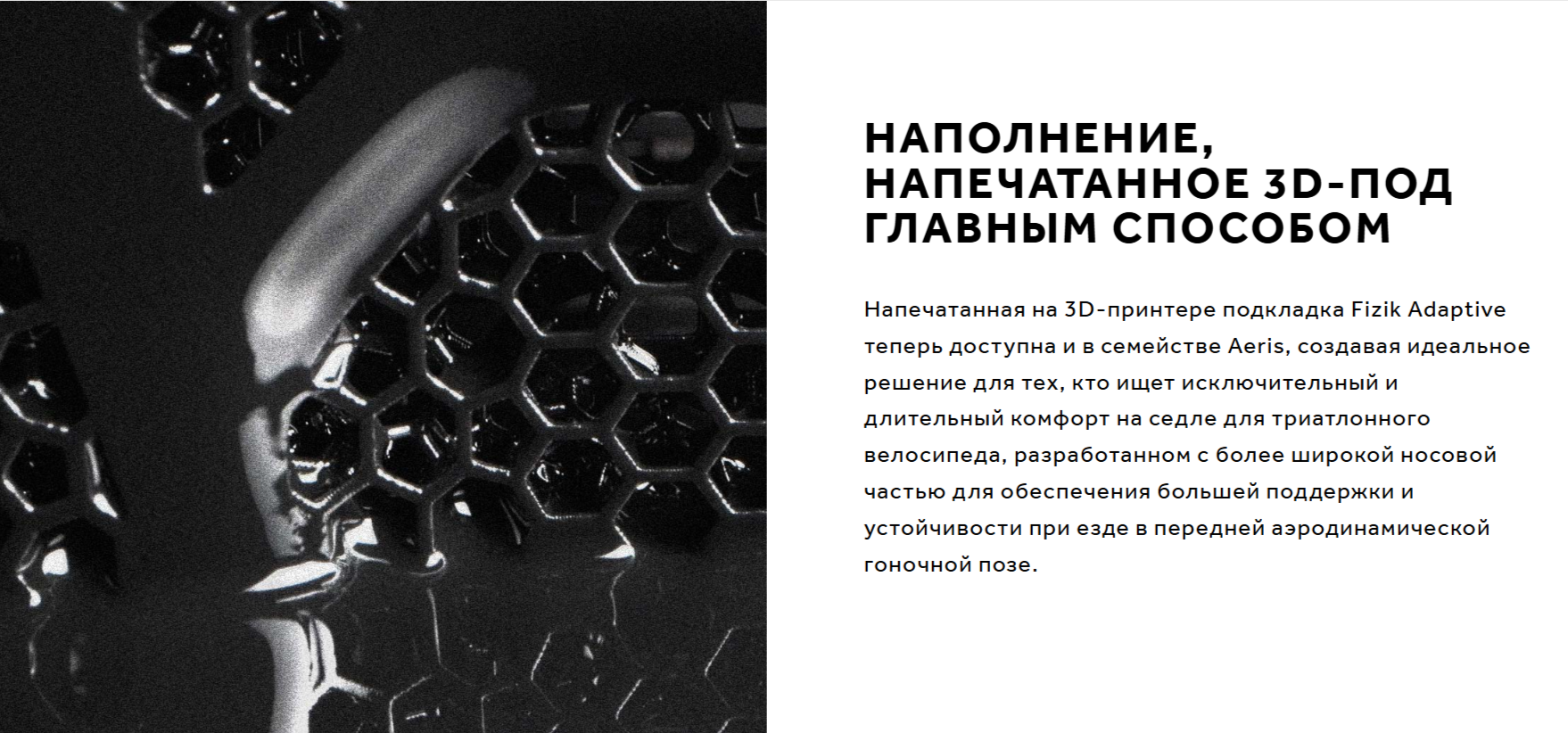 Aeris LD Adaptive — седло для триатлона с более широким носом и новым адаптивным верхним слоем, напечатанный на 3D-принтере, который обеспечивает большую поддержку и устойчивость во время длинных гонок при езде в переднем, аэродинамическом положении.