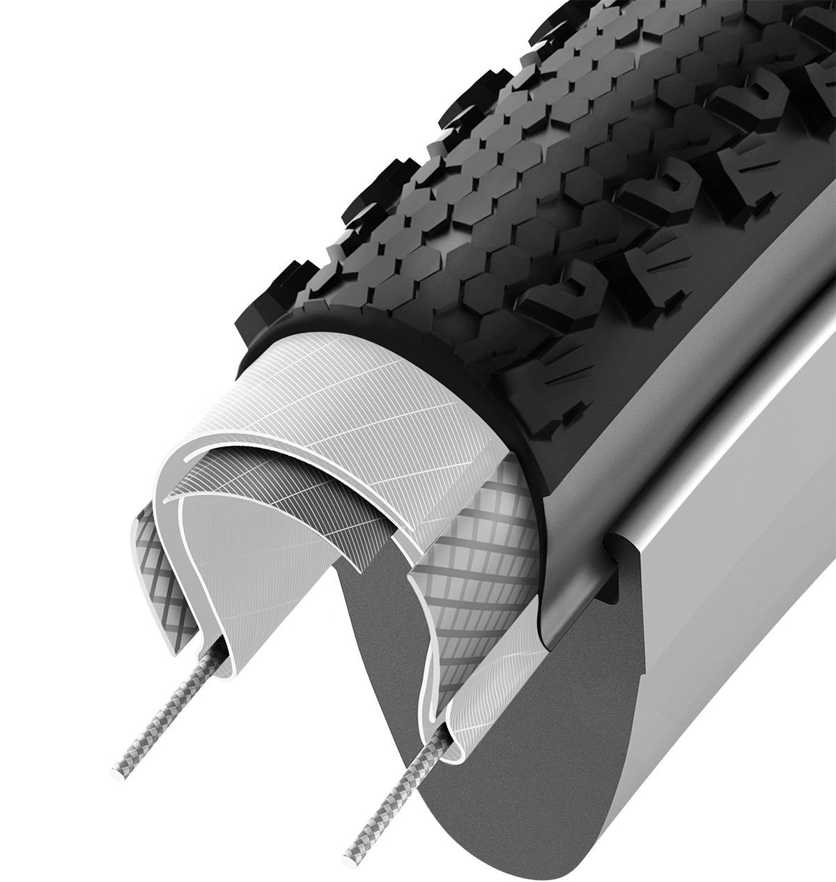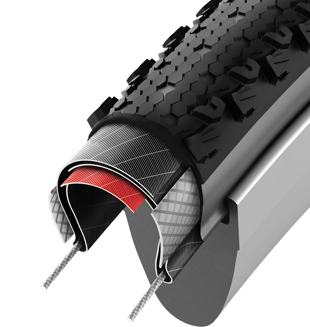 Состав резиновой смеси Terreno Mix с добавлением графена более прочный, быстрый и легкий, чем резина, и он усилен сверхпрочным и эластичным нейлоновым каркасом Endurance с дополнительными слоями защиты от проколов на центральной полосе и боковых стенках. Быстро катящиеся центральный рисунок протектора активно очищается от мусора и грязи, а боковые части хорошо держат при прохождении поворотов.